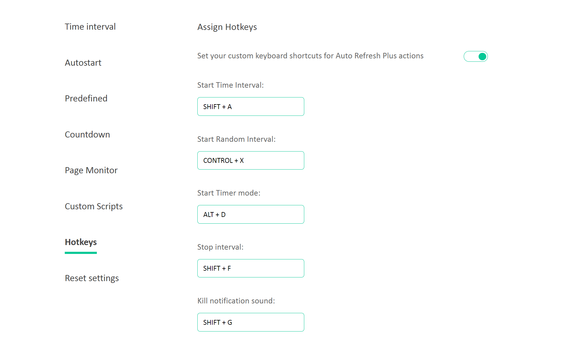 Set your custom keyboard shortcuts for Auto refresh plus actions