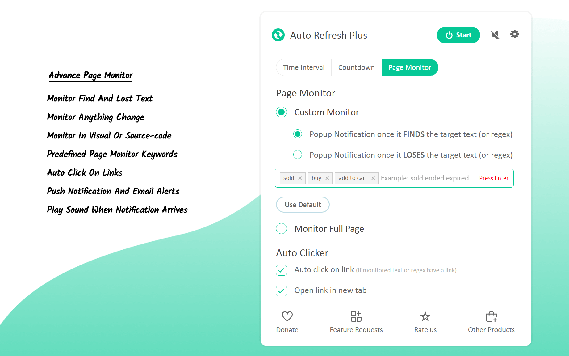 Auto Refresh Plus comes in handy to any users who need to perform automatic web pages refresh at certain times easily. It also provides content detection support, which is very useful when you need to find content included in a dynamic web page.