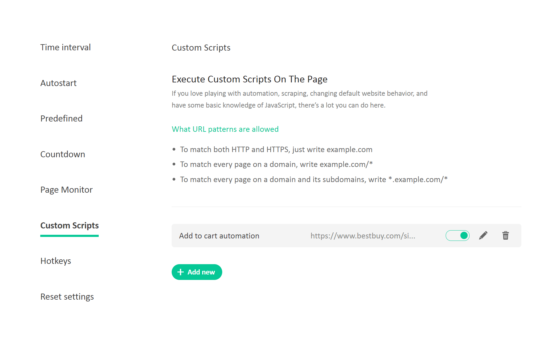 Execute custom Javascripts on page refresh, or on-page monitor event